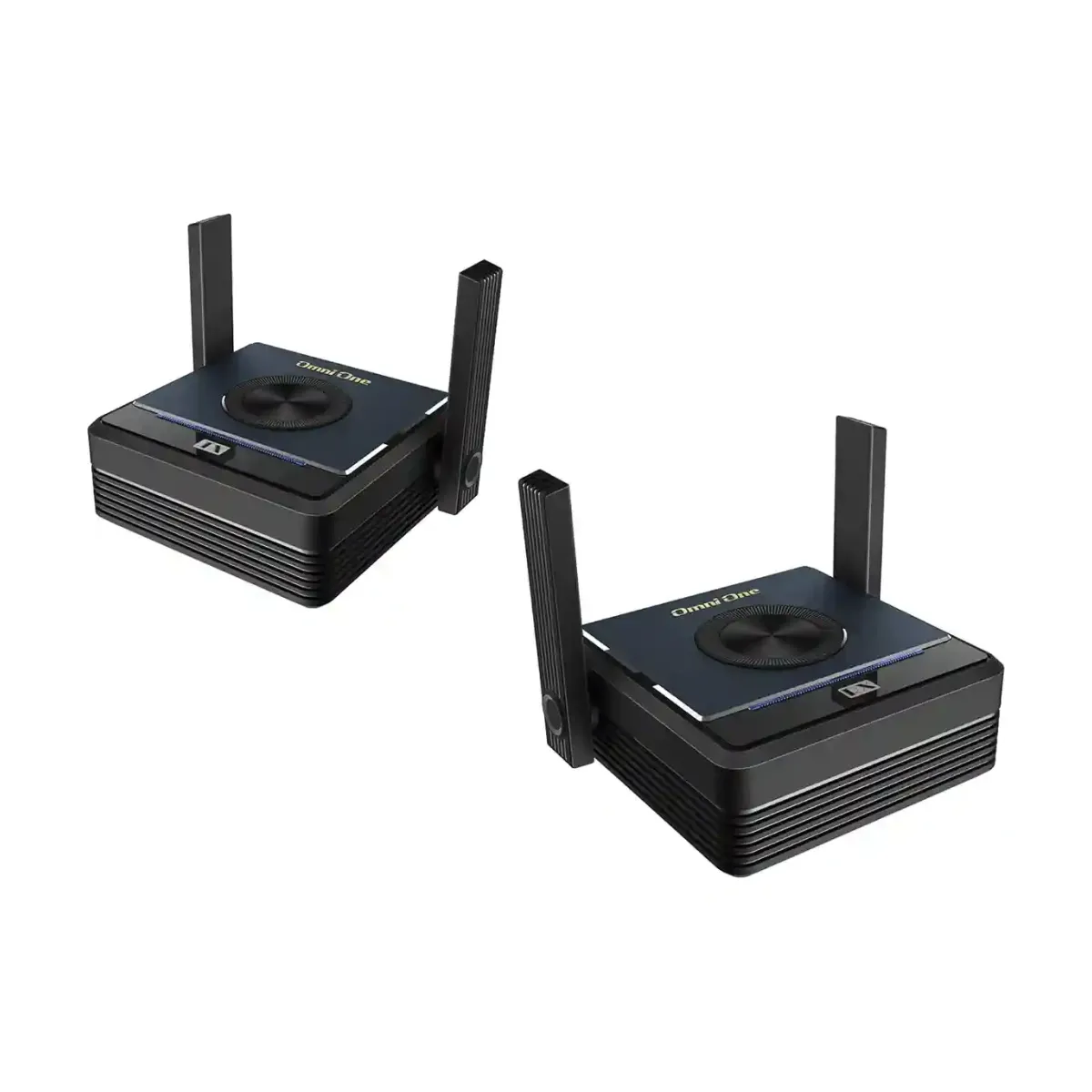 هردو فرستنده و گیرنده اکستند بی سیم Ezcast Omni One دارای 2 آنتن بیرونی قوی هستند که از شبکه وای فای 5 گیگاهرتزی پشتیبانی می کنند. 2 آنتن بیرونی ارتباطی پایدار، سریع وبا کمترین تاخیر را فراهم می سازد. همچنین پشتیبانی از فرکانس 5Ghz ایجاد تداخل در فرکانس را به صفر می رساند که همین عدم تداخل فرکانسی باعث پایداری بیشتر و سرعت بهتر در انتقال سیگنال می شود. شما نیازی به هیچ شبکه بی سیم دیگری ندارید و فرستنده و گیرنده مستقیم به یکدیگر بدون نیاز به شبکه دیگر و نرم افزار به هم متصل می شوند.